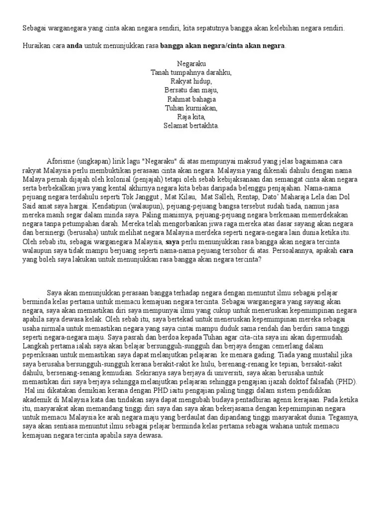 Karangan cara cara menunjukkan rasa cinta akan negara spm.